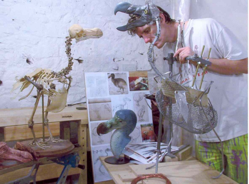 Building the armature of the Dodo sculpture using the reconstructed skeleton as a guide